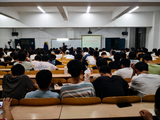 高新区消防救援大队虹桥消防救援站队长贺驾简要分析了“4.29事件”惨痛教训,从学校日常消防安全隐患排查、实验室防火安全事项、常见火情初期处置、常见消防设施设备使用方法等方面给同学们上了一堂生动的消防安全课。贺队长还现场演示了灭火器的使用方法,详细讲解了如何应对和处置初期火险。