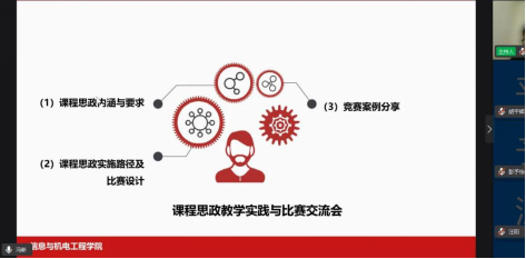 此次课程思政教学竞赛启动仪式和线上指导,既是信息与机电工程学院深入推进课程思政建设的一项必要工作安排,也是在疫情防控期间开展在线教学研讨的一次有益的尝试。通过此次会议,信息与机电工程学院教师对课程思政教学工作的认识进一步提高,明确了课程思政的深刻内涵及重要性,获得了课程思政教学的成功经验,也为如何结合工科类专业开展课程思政建设,奠定了良好的基础。