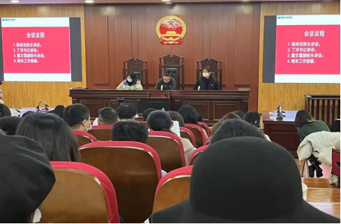 12月16日中午,人文艺术学院于学校新综合楼模拟法庭,召开2021年下学期迎评促建推进会暨期末工作会议,人文艺术学院领导及全体教职工参加。