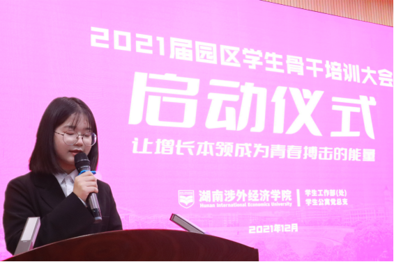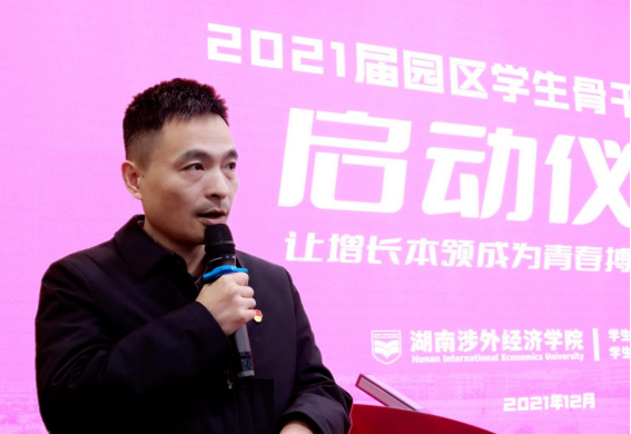仪式在激昂的中华人民共和国国歌中拉开序幕,学生工作部(处)长邝继红致辞,他对参加骨干培训的学员表示了欢迎。他希望全体学员珍惜机会、认真思考、加强实践,在学习中锤炼品格、在工作中练就本领!