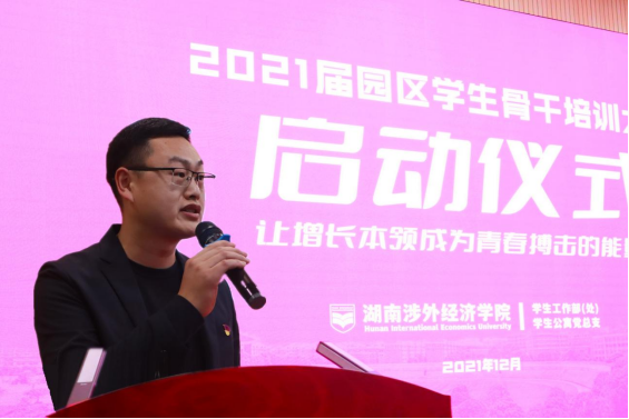 随后,杨建波宣读了《公管会学生骨干培训方案》,报告了培训课程及相关安排;校团委副书记任海巍作为培训班青年讲师代表发言,他表示一定会做到言传身教、竭尽所能,将所有的工作经验和相关知识毫无保留地传授给学员们;信息与机电工程学院冉小青同学作为培训班学员代表发言,她表示,一定会提高思想认识,端正学习态度,完成学习任务,锤炼过硬本领。