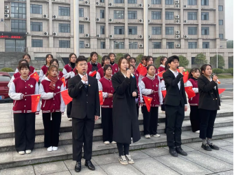 升旗仪式最后,外国语暨国际教育学院团总支学生会和新媒体中心合唱中英混合版《我和我的祖国》,美妙的歌声激起学子们心中无限的爱国之情。
