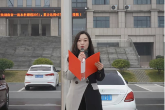 外国语学院副院长曾望进行国旗下的讲话。曾望对同学们的大学生活提出了学习上的几点建议,强调了当代大学生应该各方面协调发展,学业身体两手抓,课内课外两条腿走路;大学四年要分阶段规划,以不断的努力促成未来的质变。