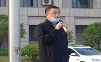 体育学院党总支书记陈志明在国旗下讲话。他说,虽然历史的硝烟已经散尽,但革命先辈们的丰功伟绩永存,生活在明媚阳光下的我们,是先辈们为革命献身,才有了我们今天的和平年代;他希望同学们能够从现在开始,心怀“国之大者”,敢于担当,在攀登知识高峰中追求卓越,在肩负时代重任时行胜于言,在真刀真枪的实干中成就一番事业,在体育学院的四年里能实现成长!