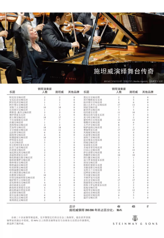 施坦威钢琴拥有97%的音乐厅使用率,是世界专业音乐厅与艺术家优先的选择用琴。