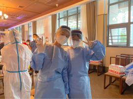 单次穿防护服的时间虽不长,但短短两三个小时内我的上衣已被汗得半湿,我们并不觉得辛苦和劳累,和医护人员们相比我们这点汗水根本不算什么。随着工作的进行,自我成就感与对医护人员们的敬畏之心油然而生。