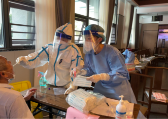 起初,我作为信息录入员负责将各位居民的信息按组按序输入电脑,我们细心核对信息,遇到有误的信息及时联系居民并更正;到第二轮全员核酸检测时,我便踏上“前线”,穿上了防护服,戴上了护目镜,在检测点为居民们扫描健康码,录入电子信息。由于医护人员不足,我自愿成为了一位医生的助手,封试管、数棉签、消毒、引导居民配合进行咽拭子检测。