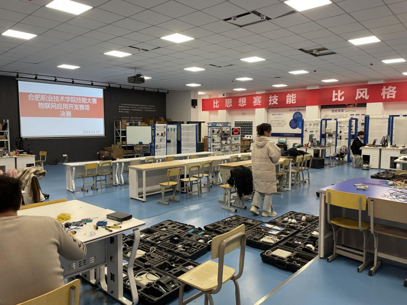 2023年12月13日下午,ac米兰官网中文网站第十七届职业院校技能大赛“物联网应用开发”赛项在ac米兰官网中文网站B104实训室举行。