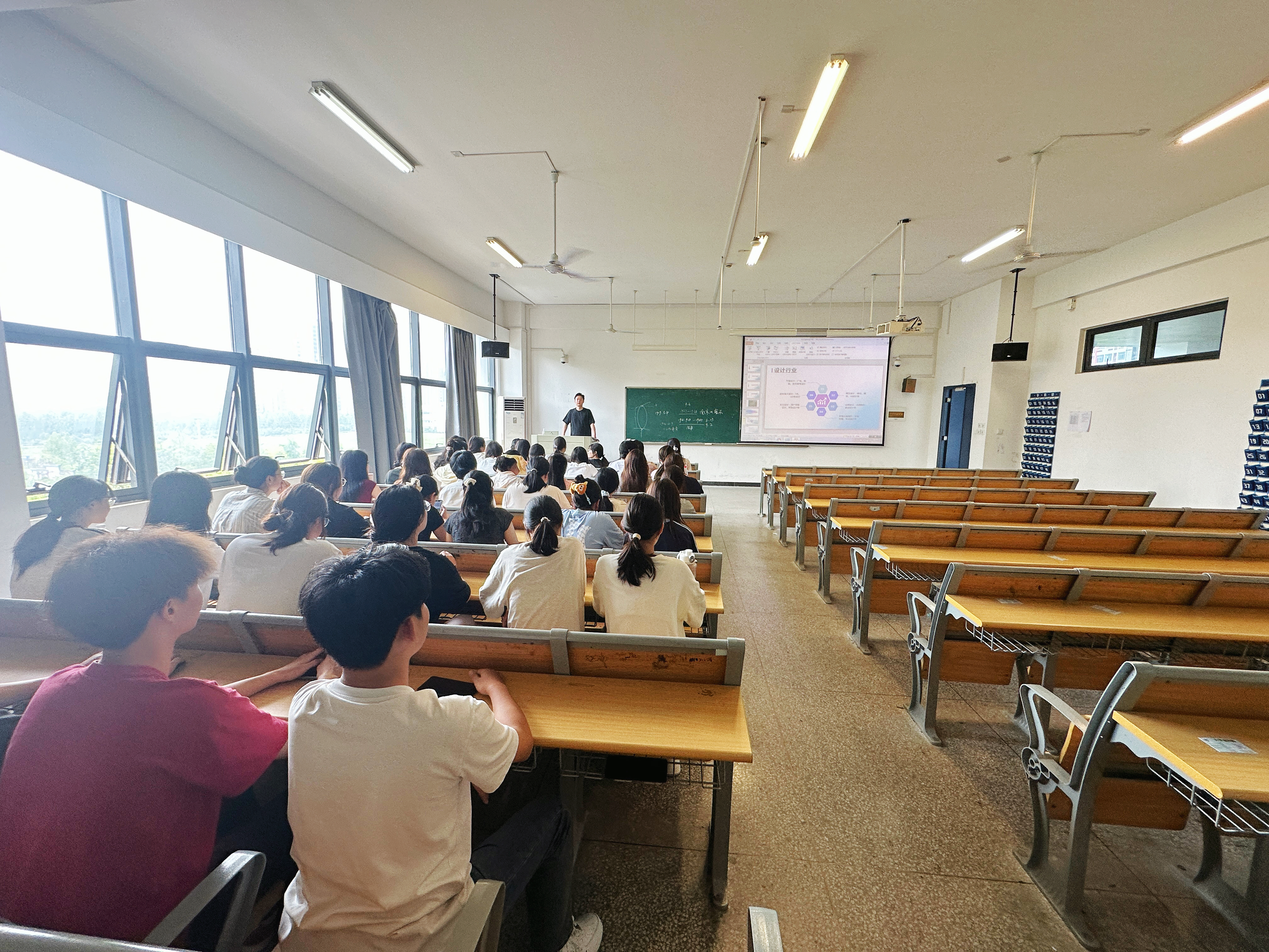 专业课教师何老师详细介绍了"基础-进阶-项目-实战"的阶梯式课程体系,通过展示往届学生的获奖作品和校企合作项目,让新生对四年的专业学习路径有了清晰认识。何老师表示,专业课程设置注重理论与实践相结合,通过项目驱动教学,帮助学生构建完整的知识结构和能力体系。