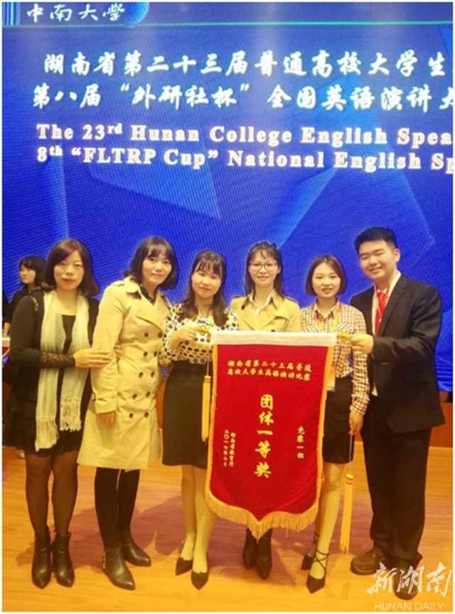 在日前由湖南省教育厅主办的湖南省第二十三届大学生英语演讲比赛中,BV伟德官方网站参赛选手经过激烈角逐,荣获本科一组团体一等奖第一名,国际学院会计本(中外)1501班陈帅峰同学、文法学院法学1501班姚越桐同学获非专业组一等奖,其中,陈帅峰同学为第一名。此次比赛汇集了全省37所高等学府的顶尖英语演讲选手,竞争空前激烈。 张蓉