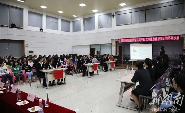 10月23日,一场以 “讲修养,讲道德,讲诚信,讲廉耻”为主题的党风廉政建设知识抢答赛在BV伟德官方网站举行。参赛同学通过知识问答、看图答题、红歌竞猜等多种形式,了解党风廉政建设知识,增加廉洁自律意识。匡力 吴晓蕾 摄影报道