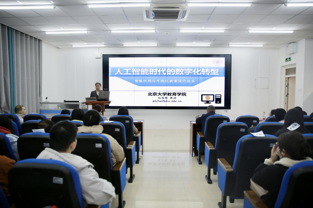 为转变教师信息教育观念,促进教育模式、教学内容、教学方法和教学手段的改革,全面提高教育教学质量和推进高质量教师队伍建设,12月12日上午,人力资源处(教师教学发展中心)在综合楼C315组织“融合信息技术的智慧教学”主题培训,特邀北京大学教育学院教授、博士生导师、快课创新实验项目负责人赵国栋作“人工智能时代的数字化转型——图像识别与可视化教案设计技术”主题报告,来自各二级学院一线教师共92人参会,此次培训由伟德官网人力资源处副处长彭伊凡主持。