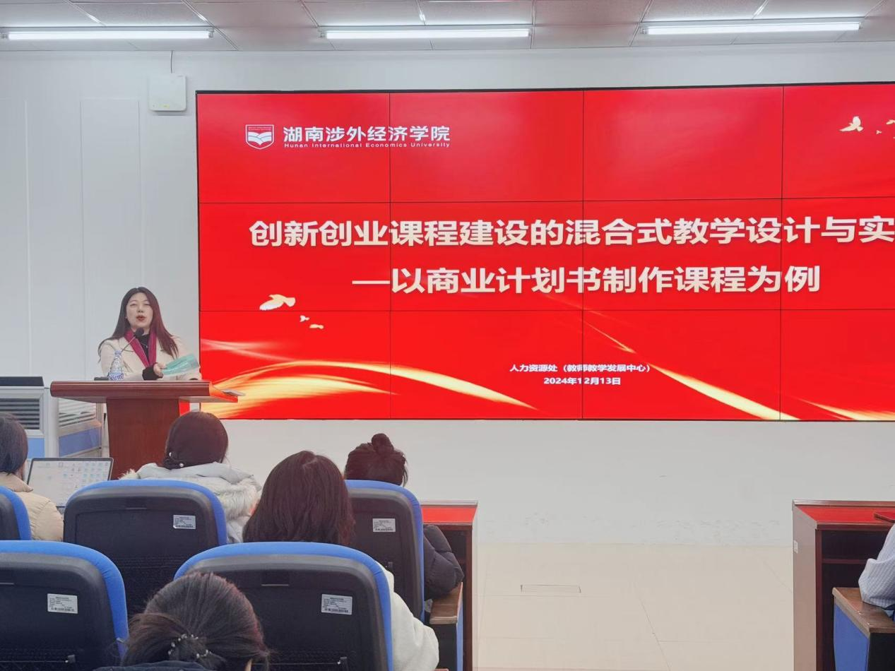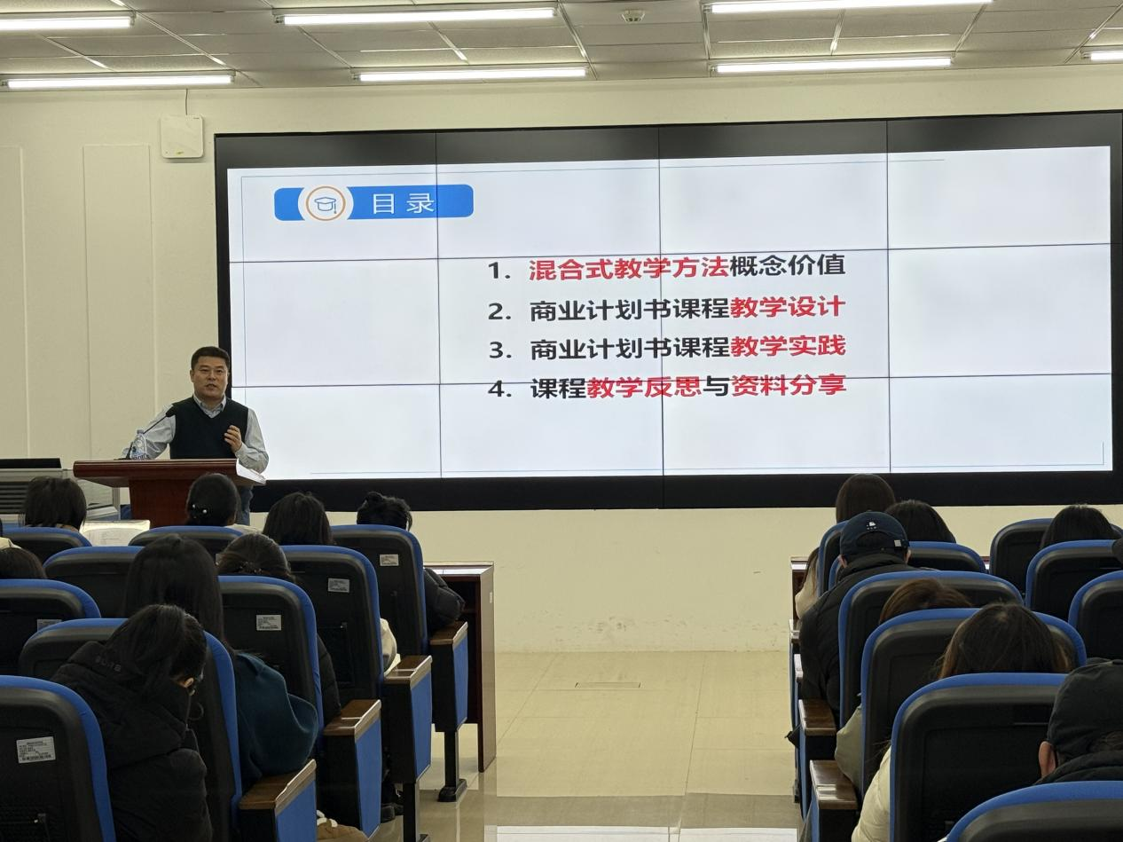12月13日上午,人力资源处(教师教学发展中心)邀请北京科技大学经济管理学院管理学博士、副教授邓立治,以“创新创业课程建设的混合式教学设计与实践—以商业计划书制作课程为例”为主题,在综合楼C315为全体参训教师带来了一场生动有趣的专题培训,旨在深化教师对于混合式教学方法的理解,并通过商业计划书制作课程为例,展示其在创新创业教育中的应用与成效。来自各二级学院110余名教师参训,此次培训由人力资源处副处长彭伊凡主持。