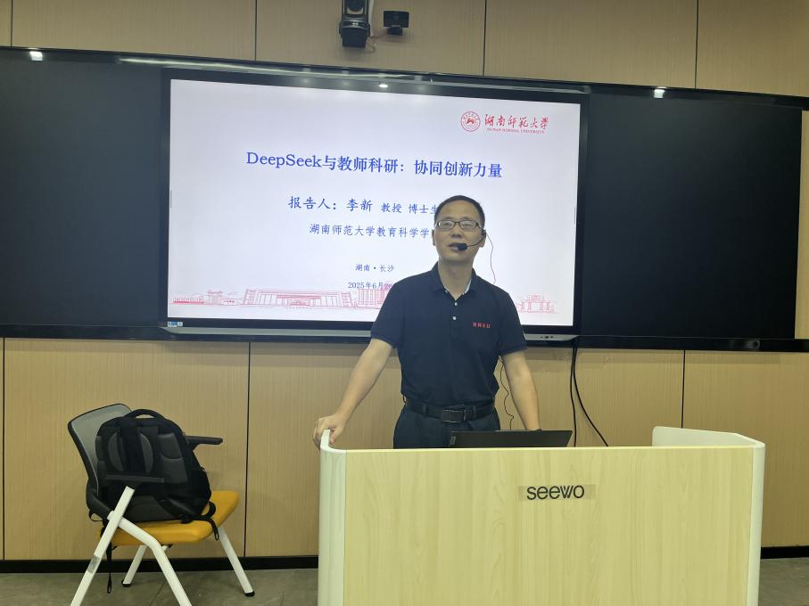 6月26日上午,为助力伟德官网教师掌握智能教育工具的应用,探索AI技术与教学科研的深度融合路径,为学校高质量发展持续注入新动能。人力资源处(教师教学发展中心)邀请湖南师范大学教授、博士生导师李新在教师教学发展中心(实训楼南512)开展主题为“融合DeepSeek 升级AI技术赋能教学科研”的专题培训,来自各二级学院36名专任教师参训,本次培训由人力资源处副处长彭伊凡主持。