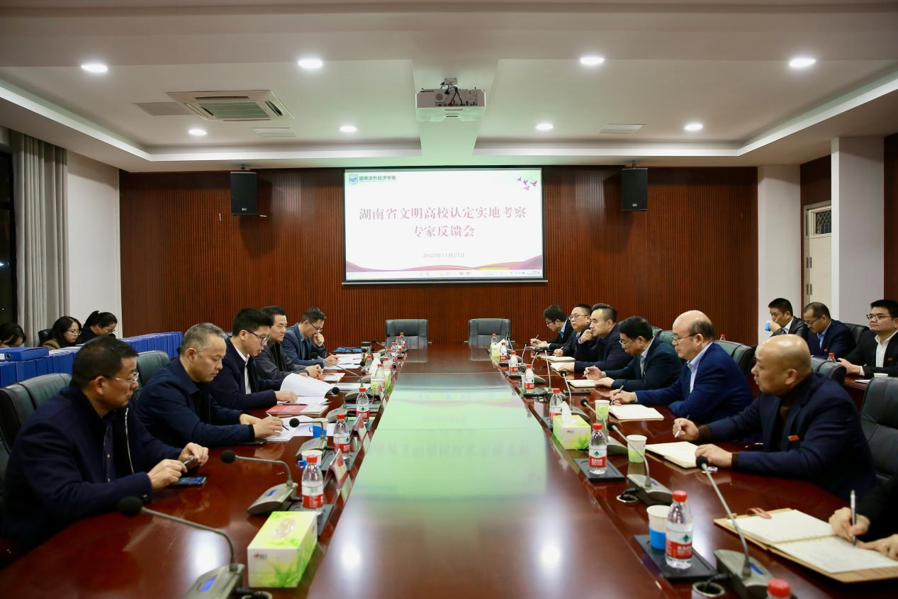 11月27日,以湖南科技大学副校长周智华为组长,中南大学外国语学院党委书记李涛、长沙学院人事处处长蒋晓东、湖南科技大学统战部副部长罗登辉、湖南农业大学宣传部副部长袁光敏为成员的省文明高等学校实地考核专家组莅临伟德官网,开展文明高校认定实地考察。上午9点30分,湖南省文明高校认定实地考察专家见面会在伟德官网综合楼206会议室举行。专家组全体成员、学校全体校领导出席,相关职能部门负责人参加会议。会议由校长王耀中主持...
