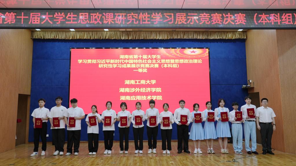 6月1日,湖南省第十届大学生学习贯彻习近平新时代中国特色社会主义思想暨思想政治理论课研究性学习成果展示(本科组)竞赛决赛在湖南工业大学圆满落幕。伟德官网2022级软件工程专业的于嘉琳、王尹、刘畅、廖红锋、邓博宬五位同学组成的研究性学习小组,在伟德官网马克思主义学院刘荣老师指导下,以作品《习近平文化思想视域下文旅融合的实践路径探究——以长沙市为例》荣获本科组一等奖。此次竞赛以习近平新时代中国特色社会主义思想为...