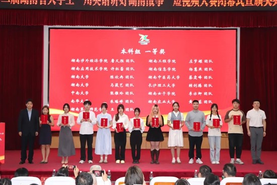 9月24日,第二届湖南省大学生“用英语讲好湖南故事”短视频大赛闭幕式暨颁奖典礼在湖南农业大学修业讲堂圆满落幕,伟德官网外国语与国际教育学院杨颖、徐翠波老师指导的《一片叶子的故事》(团队成员:信息学院詹义胜、人文艺术学院李香、人文艺术学院杨浩冉、 商学院张妍、信息学院徐焌)斩获本科组一等奖。杨帆、廖师师老师指导的《盐碱地里稻花香》(团队成员:外国语与国际教育学院邝代昌、林煦阳、曲悦宁、张亚玲、文籽妍)荣...