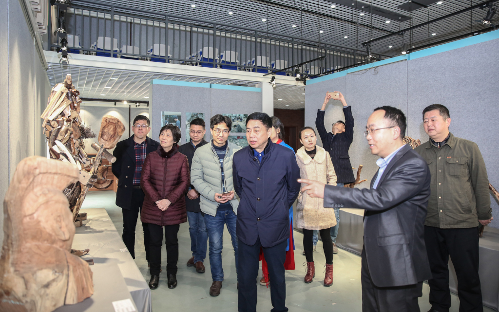(王耀中校长一行参观原木艺术展)(展出作品)(展出作品)(展出作品)浅灰色调的大厅,弥漫着木质特有的清香,在若干如繁星般顶灯的照映下,一个个活灵活现、创意十足的原木艺术作品迸发着迷人的柔和光芒。有站着的李逵和神农氏,雄姿勃发;有爬在墙上的树蛙和蜘蛛,憨态可掬;有漫步的仙鹤和梅花鹿,灵秀脱凡……这便是伟德官网艺术设计学院杨刚副教授的原木艺术展现场。3月21日上午10点,学校校长王耀中,副校长白解红,副校...