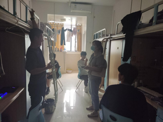 宿舍的卫生状况是同学们精神面貌的体现,干净整齐的宿舍展现了大学新生积极向上的生活态度。走访中,班主任们在了解同学们生活情况的基础上,嘱咐新生们提高安全意识,养成良好的生活习惯;积极配合学校疫情防控要求以及各项管理制度,共同营造一个和谐健康平安的校园环境。