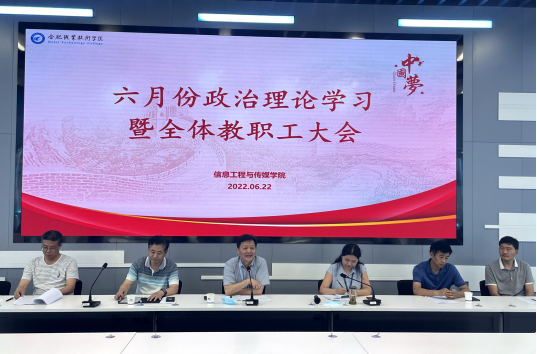 6月22日下午,信息工程传媒学院在轨道楼四楼网络安全中心召开六月份政治理论学习暨全体教职工大会,联系信传学院的校纪委书记陶宁同志出席会议,会议由院党总支书记李红雨主持,学院全体教职工参会。