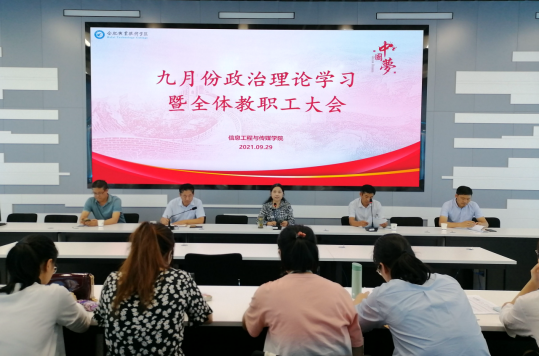 9月29日下午,ac米兰官网中文网站在轨道楼四楼网络安全实训中心召开九月份政治理论学习暨全体教职工大会,会议由院党总支书记李红雨主持,学院全体教职工参加会议。