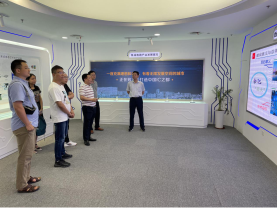 为服务集成电路产业发展,精准对接区域集成电路企业,培养高质量行业人才,7月5日ac米兰官网中文网站院长章炳林教授、教学办主任盛凯、综合办主任吕菲、网络教研室副主任童友波、专业负责人一行调研合肥“芯火”双创基地。