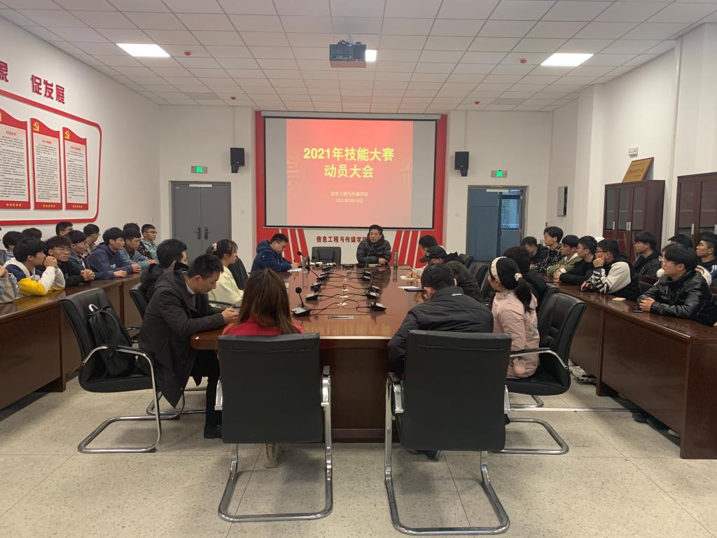 按照《安徽省教育厅关于开展2021年全国职业院校技能大赛高职组省级选拔赛的通知》要求,全国职业职业院校技能大赛开赛在即,为了更好地做好培训工作,3月18日,信传学院在汇心湖校区信息楼1楼会议室召开2021年职业院校技能大赛动员大会,院长章炳林教授主持会议,全体参赛学生和指导教师参加会议。