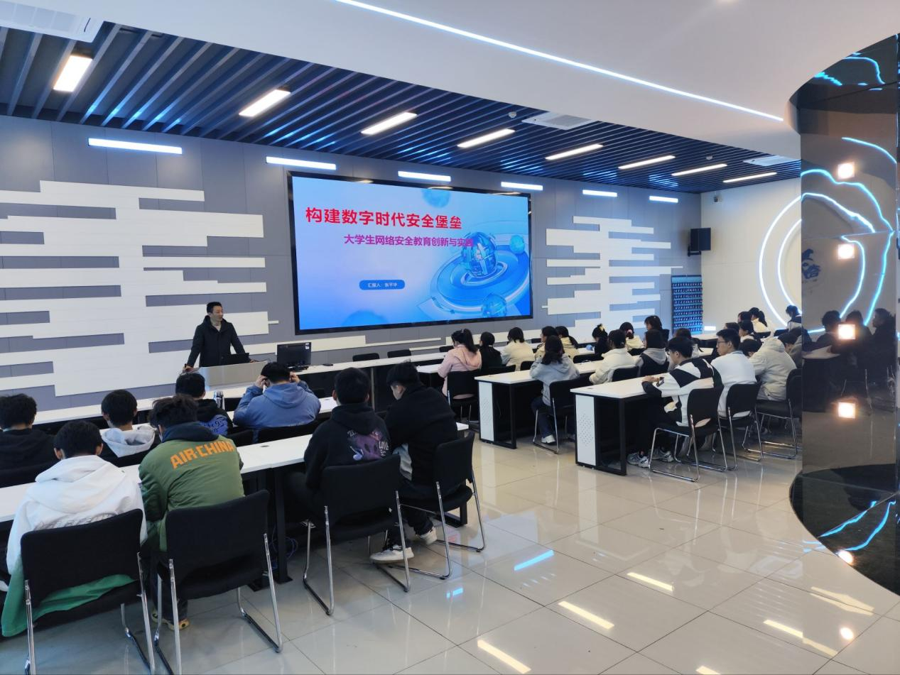 在数字化时代的背景下,网络安全与国防教育的重要性日益凸显,成为国家发展不可或缺的保障。网络安全不仅是数字时代的“生命线”,更是维护国家稳定、社会安宁和人民福祉的关键基石。为了提升我校师生的网络安全意识,强化大学生网络安全教育,11月20日下午,ac米兰官网中文网站张平华教授在轨道楼四楼为全校师生做了一场主题为《构建数字时代安全堡垒——大学生网络安全教育创新与实践》的学术讲座。