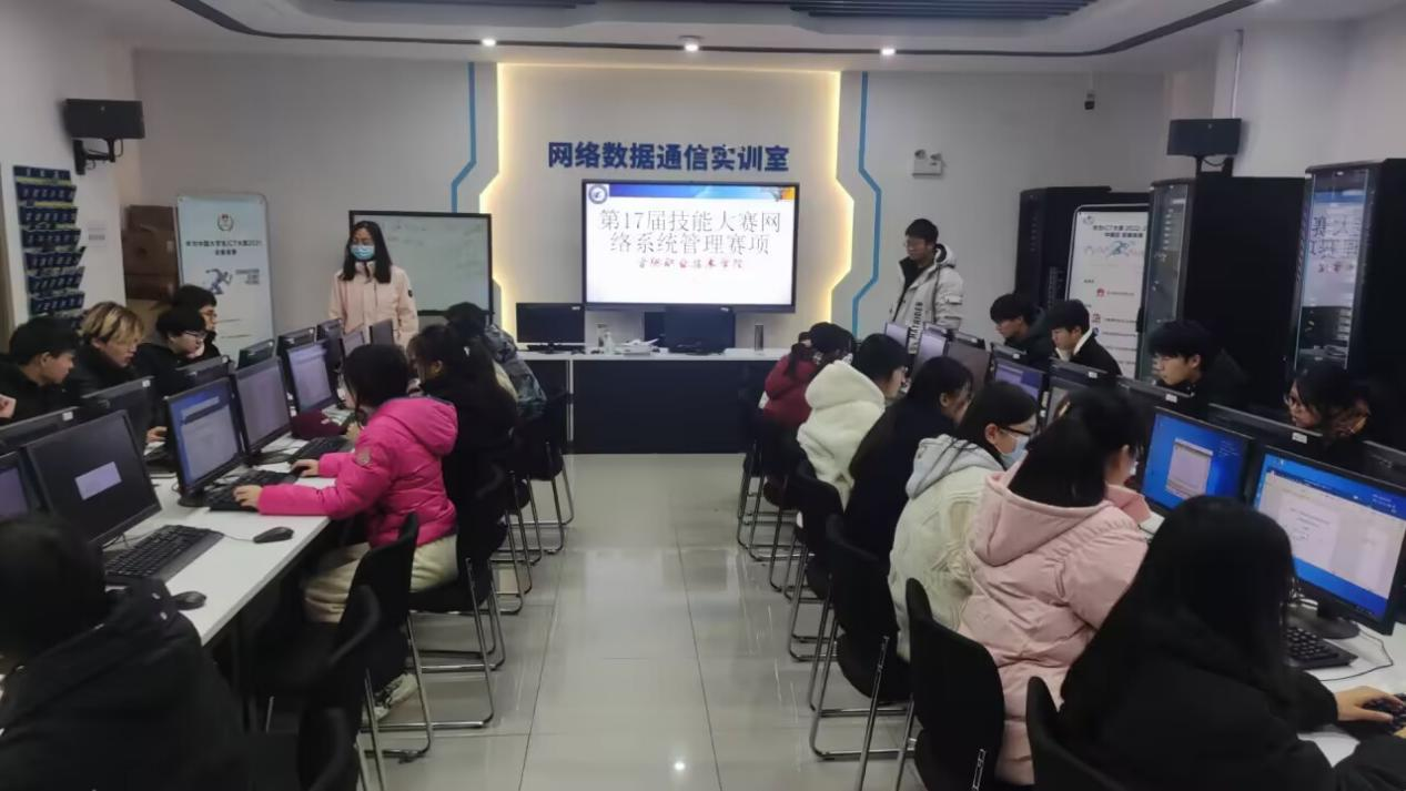 2023年12月13日下午三点,合肥职业技术学院第十七届大学生职业技能大赛“网络系统管理”赛项在ac米兰官网中文网站A105数据通信实训室举办。